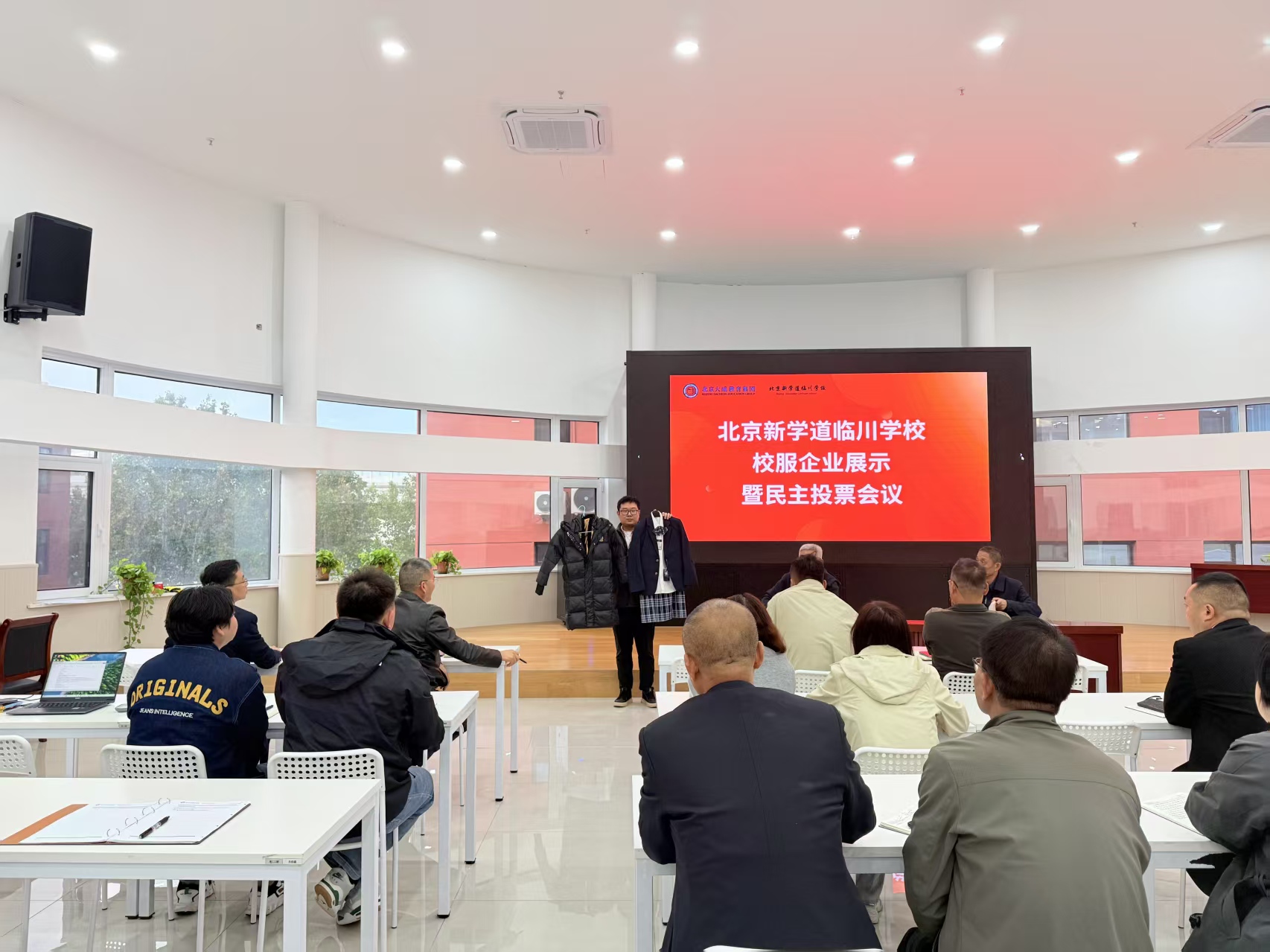 2025年9月19日,校服选用组织经过资格审查和深入调研,核实校服企业生产加工能力、质量保障能力、售后服务水平、社会信誉度等,投票选出山西茜奥服饰经贸中心,后续校服生产销售企业进入第二轮进行现场展示校服质量、报价、售后服务等相关事宜和方案说明。
