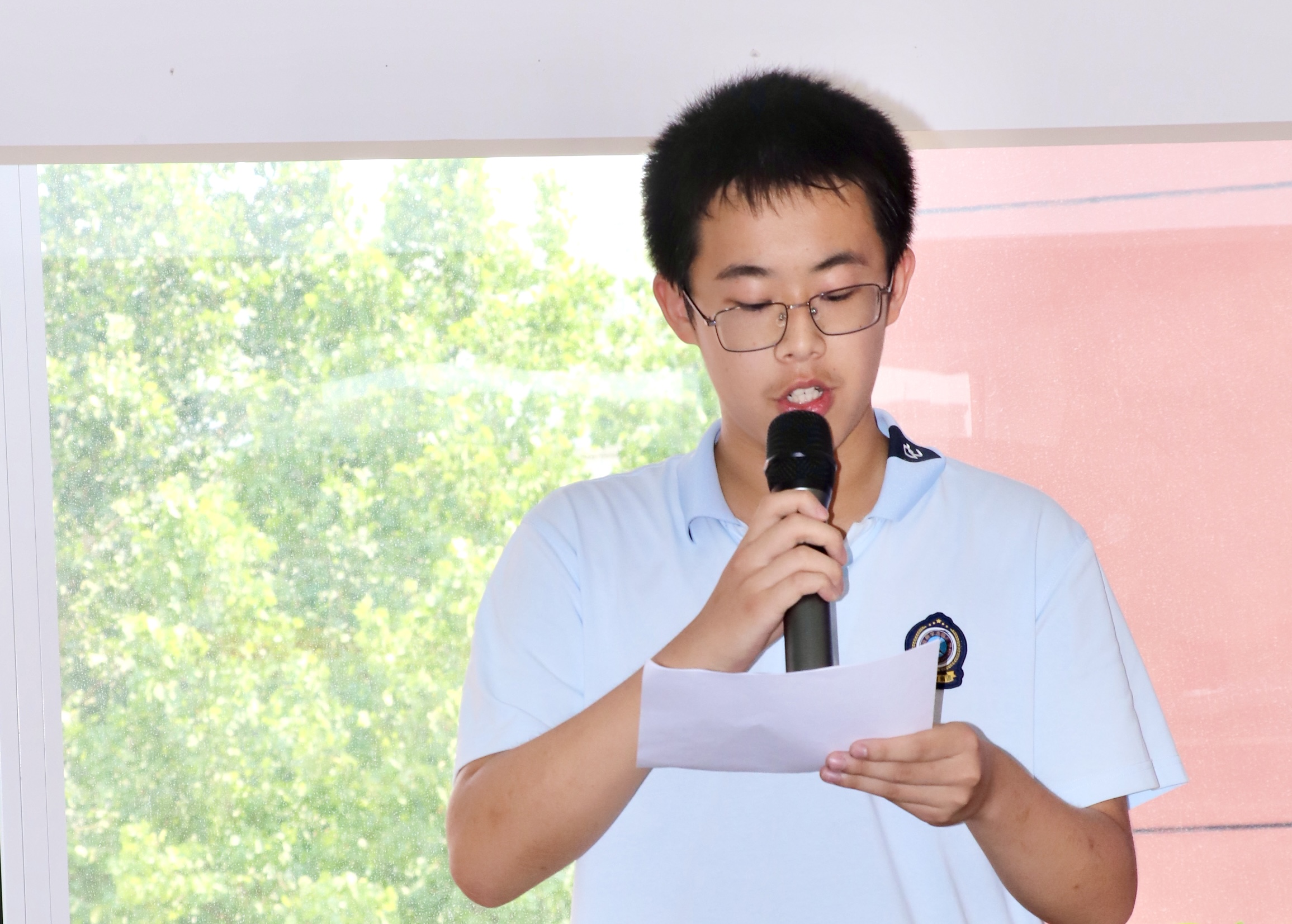 随后,初一1班李卓恒同学作为学弟学妹代表送上祝福。稚嫩的声音中饱含着对学长学姐的钦佩与祝愿:“学长学姐们,你们是我们学习的榜样!希望你们在考场上所向披靡,旗开得胜,我们在校园里等你们凯旋!”这份来自学弟学妹的纯真祝福,让九年级学子们倍感温暖与鼓舞。