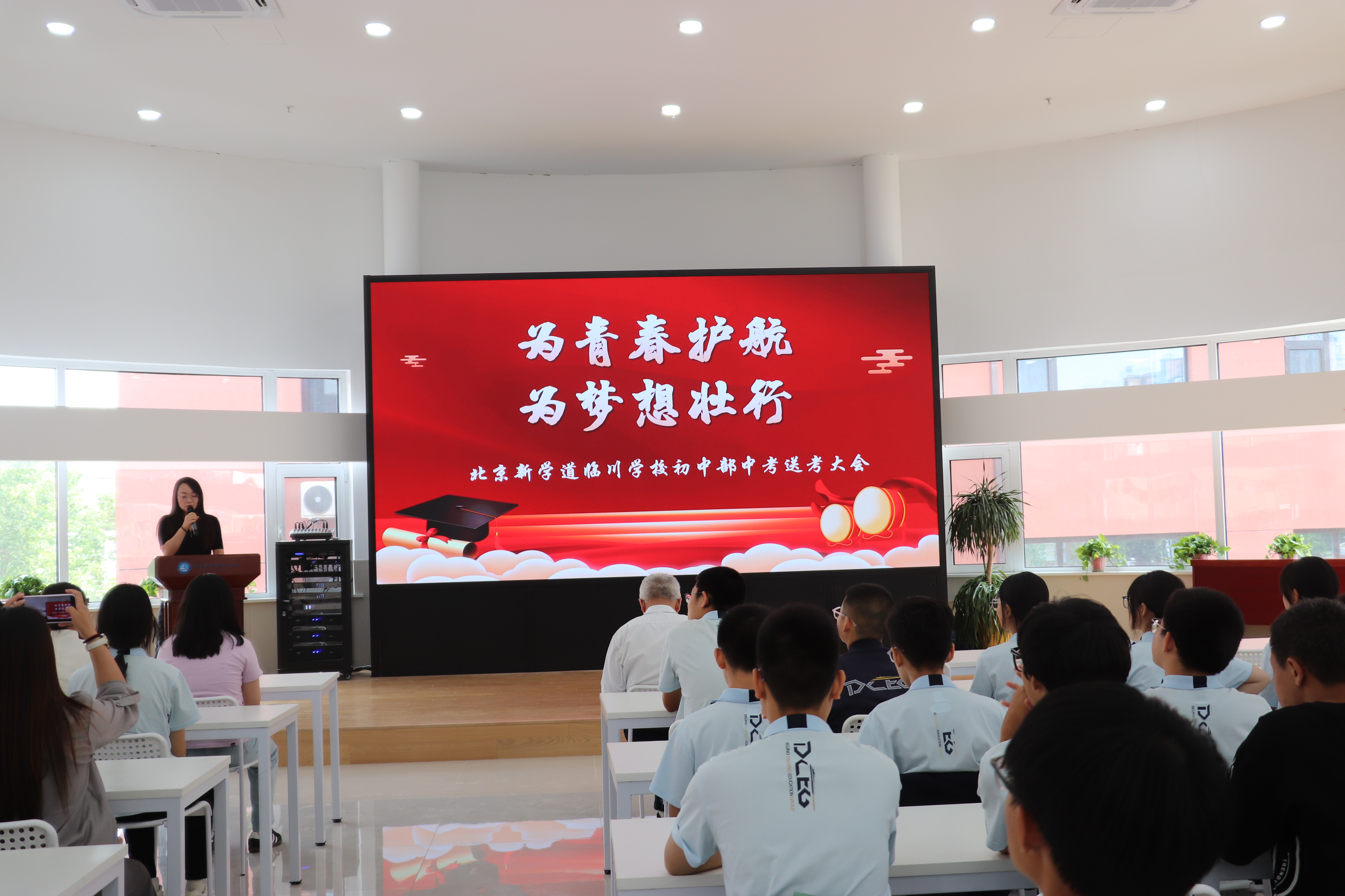 当六月的风裹挟着盛夏的炽热拂过校园,中考的战鼓已然响彻云霄。日前,为了给即将奔赴中考考场的学子们加油助威、鼓劲赋能,北京新学道临川学校在报告厅隆重举行了主题为“为青春护航,为梦想壮行”的2025届中考送考大会。校长蒋石文、国内部校长魏媛媛,以及初三年级全体师生参加了此次大会。